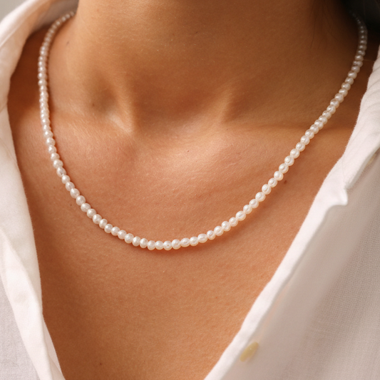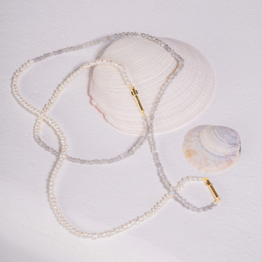 Each necklace is made from carefully selected materials. Our pearls impress with their unique shine and long-lasting quality. The combination with precious metals such as silver or gold makes our necklaces timeless pieces of jewelry.