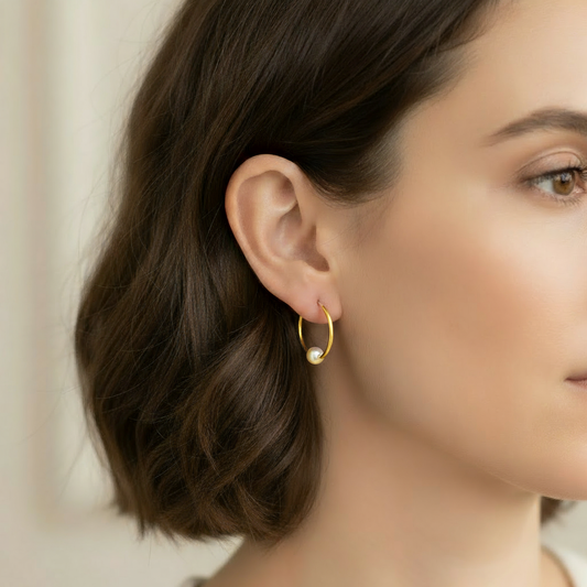 - Hoop earrings with pearl – silver or gold : Classic hoop earrings, refined with shimmering pearls, available in elegant silver or radiant gold.