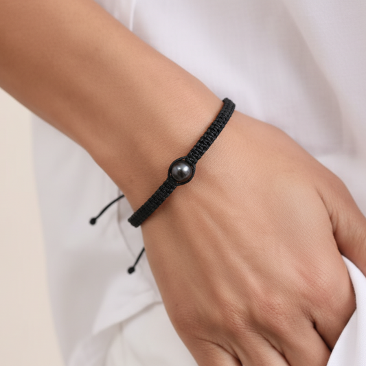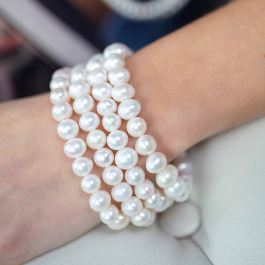 - Elegant grey pearl bracelets that add a special touch to your outfit.