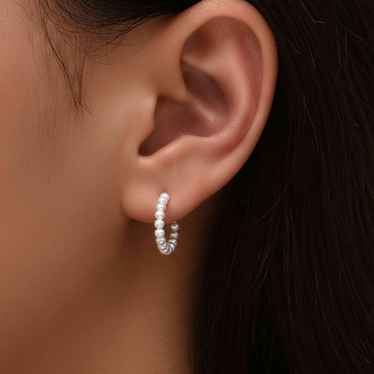 - Hoop earrings with pearl – silver or gold : Classic hoop earrings, refined with shimmering pearls, available in elegant silver or radiant gold.