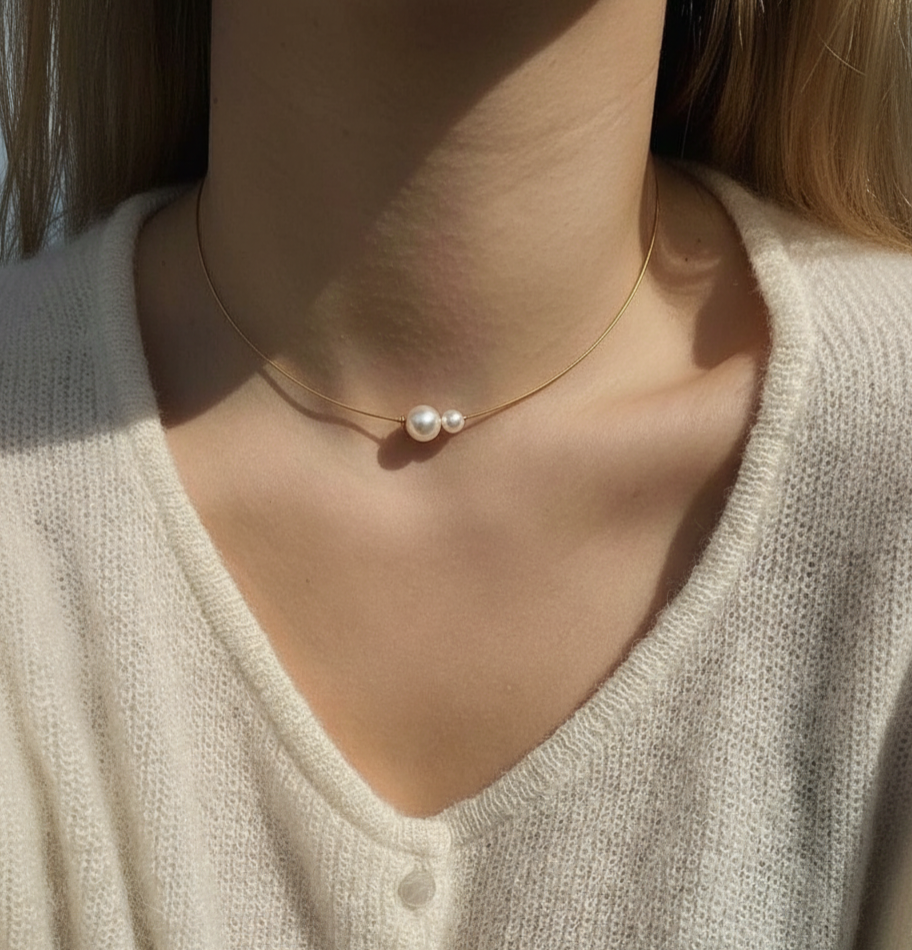 Die feinen Süßwasserperlen verleihen diesem Halsreif eine zeitlose, natürliche Eleganz. Das moderne Design mit filigranem Reif setzt die sanft schimmernden Perlen bewusst in den Fokus und macht das Schmuckstück zu einem stilvollen Akzent. Ob als zurückhaltender Blickfang zum Abendkleid, als edles Detail im Business-Look mit Bluse und Blazer oder als klares Statement zu minimalistischen Outfits – dieser Halsreif ergänzt jede Garderobe mit ruhiger, hochwertiger Ausstrahlung.