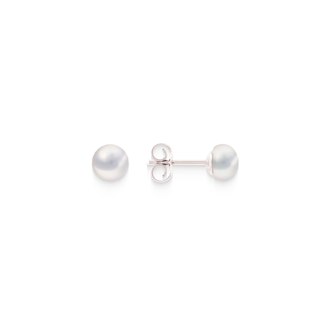 Hochwertige Ohrstecker aus platiniertem 925 Silber mit strahlend weißen Süßwasser-Zuchtperlen – langlebig, anlaufgeschützt und in verschiedenen Größen erhältlich.